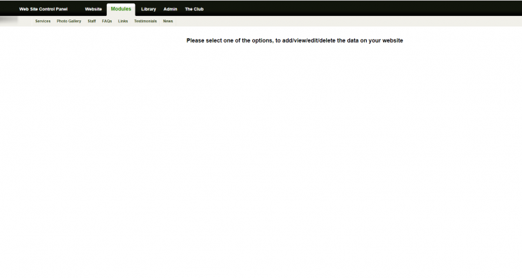When you click on each of the page titles the page will scroll down and show you the elements on that page. If it is a block of text or an image when you click on the element you will be taken to a paged edit that element. If the element represents one of the many database modules of the system it will be indicated by a blue square. In this case to edit the content of this element you will need to go to the modules top tab and then select the relevant module to edit.